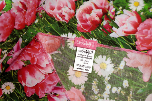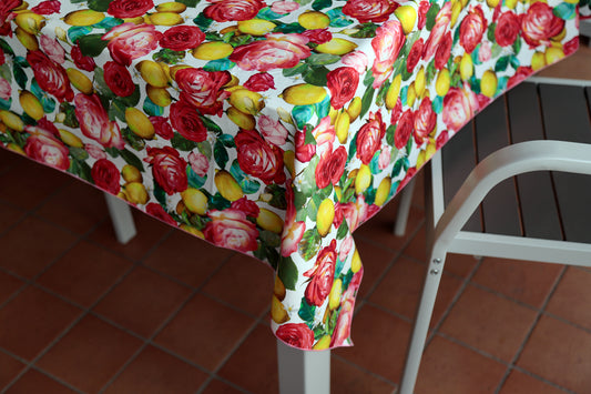 TOVAGLIA ROSE E LIMONI tela puro cotone