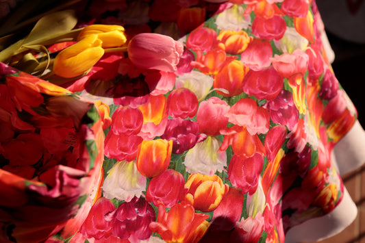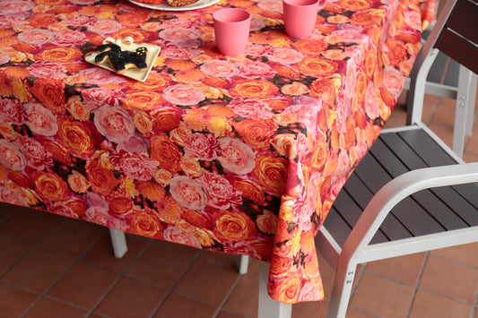 TOVAGLIA ROSE ARANCIONI e VIOLA tela puro cotone