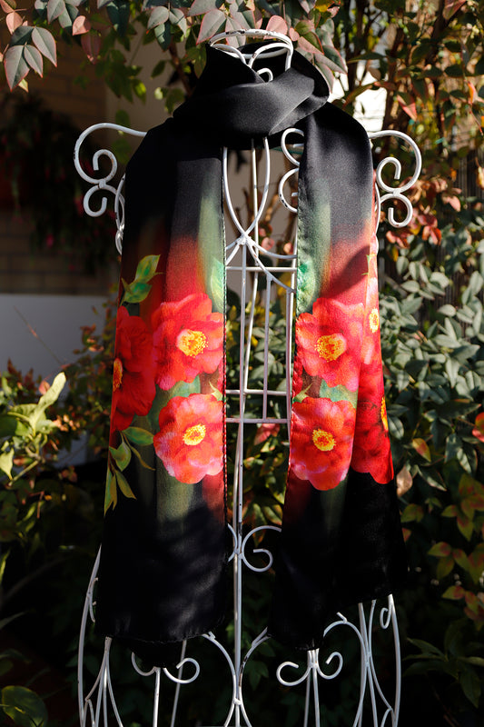 SCIARPA PURA SETA CAMELIE fondo nero