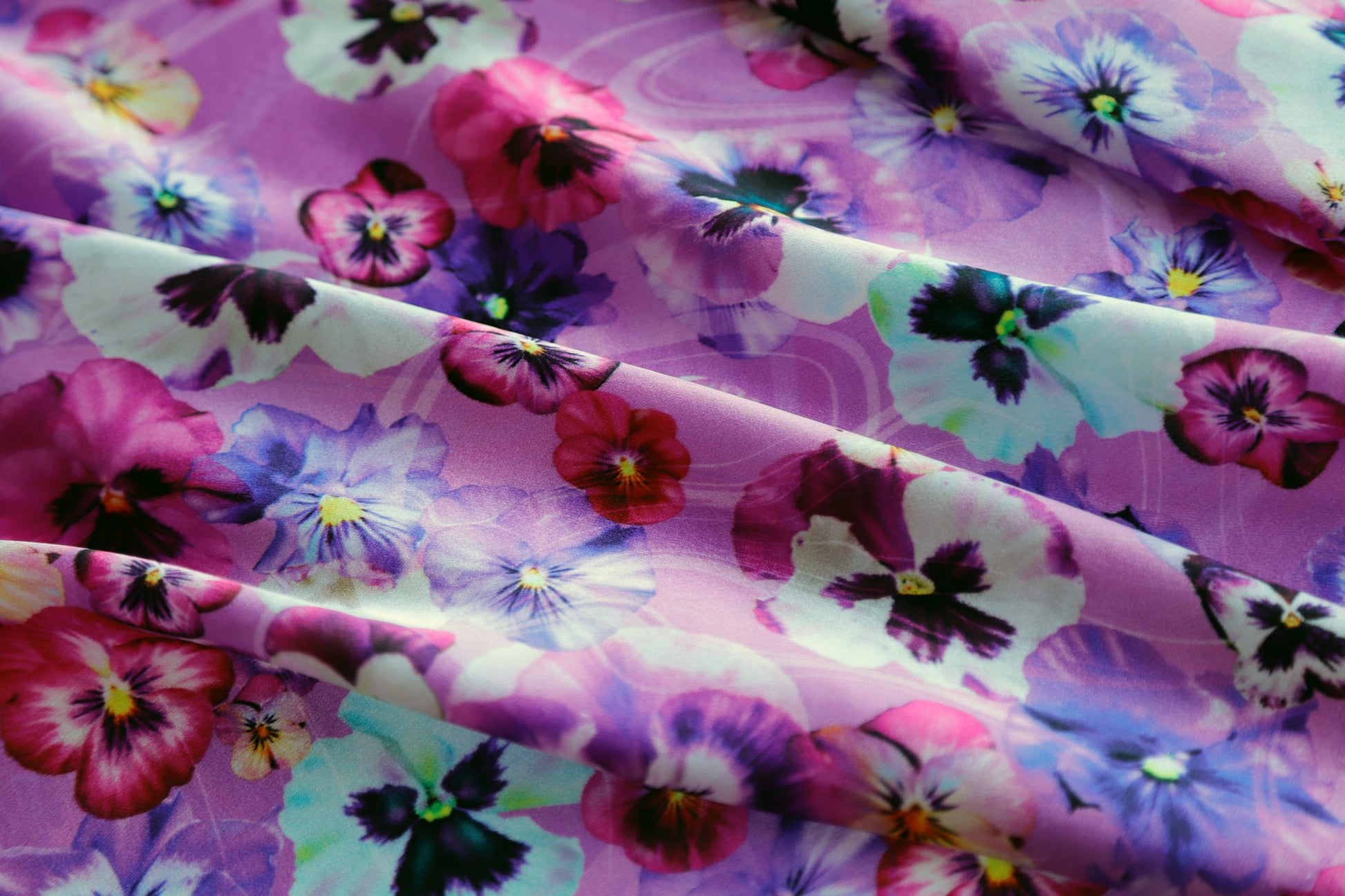 Tessuto sostenibile stampato a basso impatto ambientale.