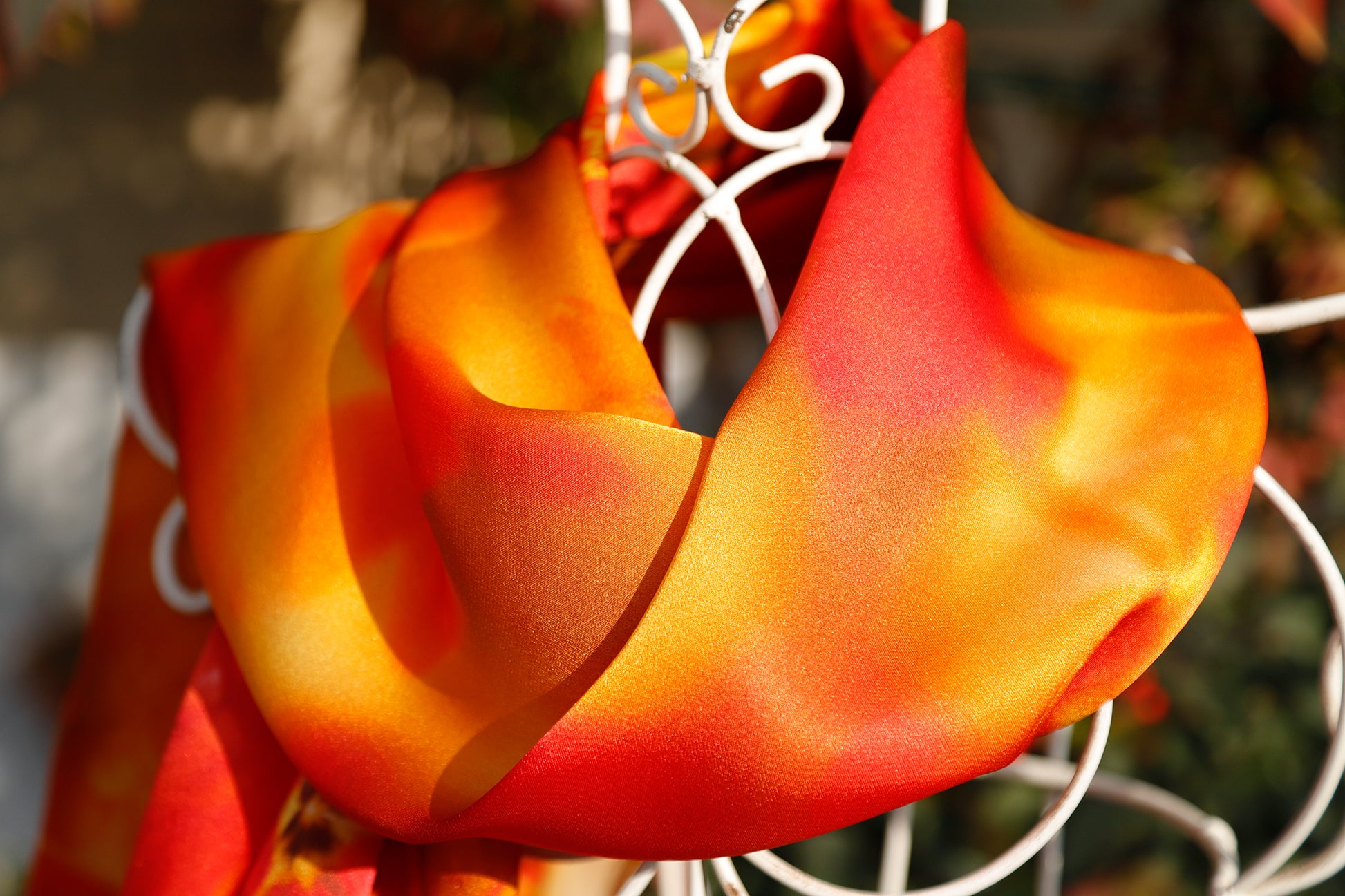 Fibra naturale, traspirante e termoregolatrice, tiene il corpo fresco d’estate e caldo d’inverno. Con la seta realizziamo sciarpe e foulard, dalla naturale brillantezza ed eleganza.