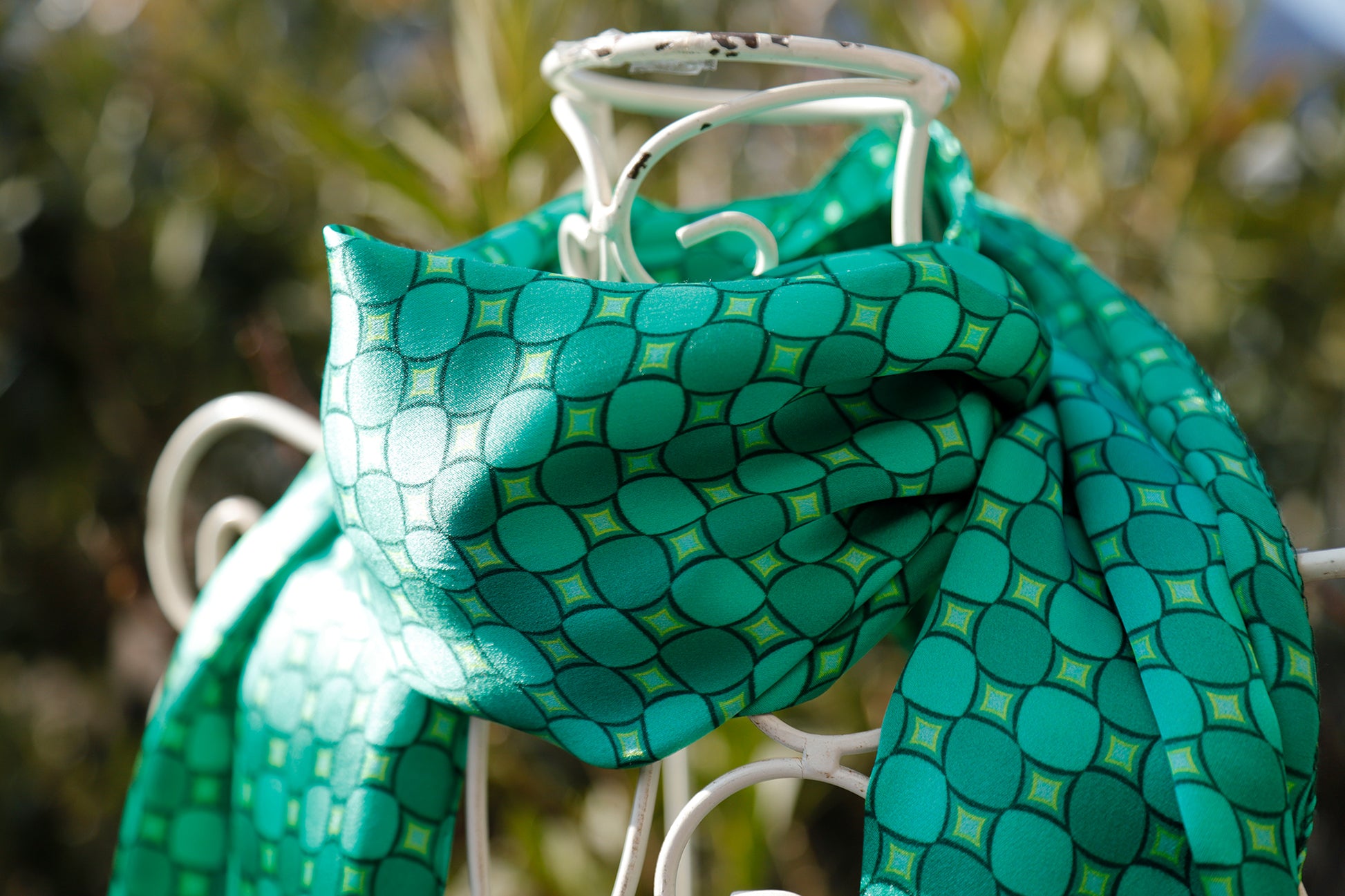 Utilizziamo questo tessuto per realizzare sciarpe e foulard quadrati che possono essere usati anche come bandane o da annodare su capelli e borse.