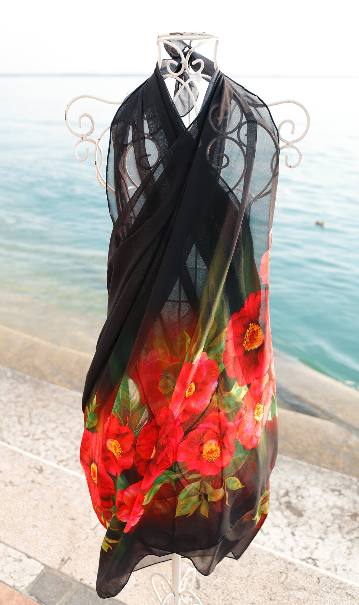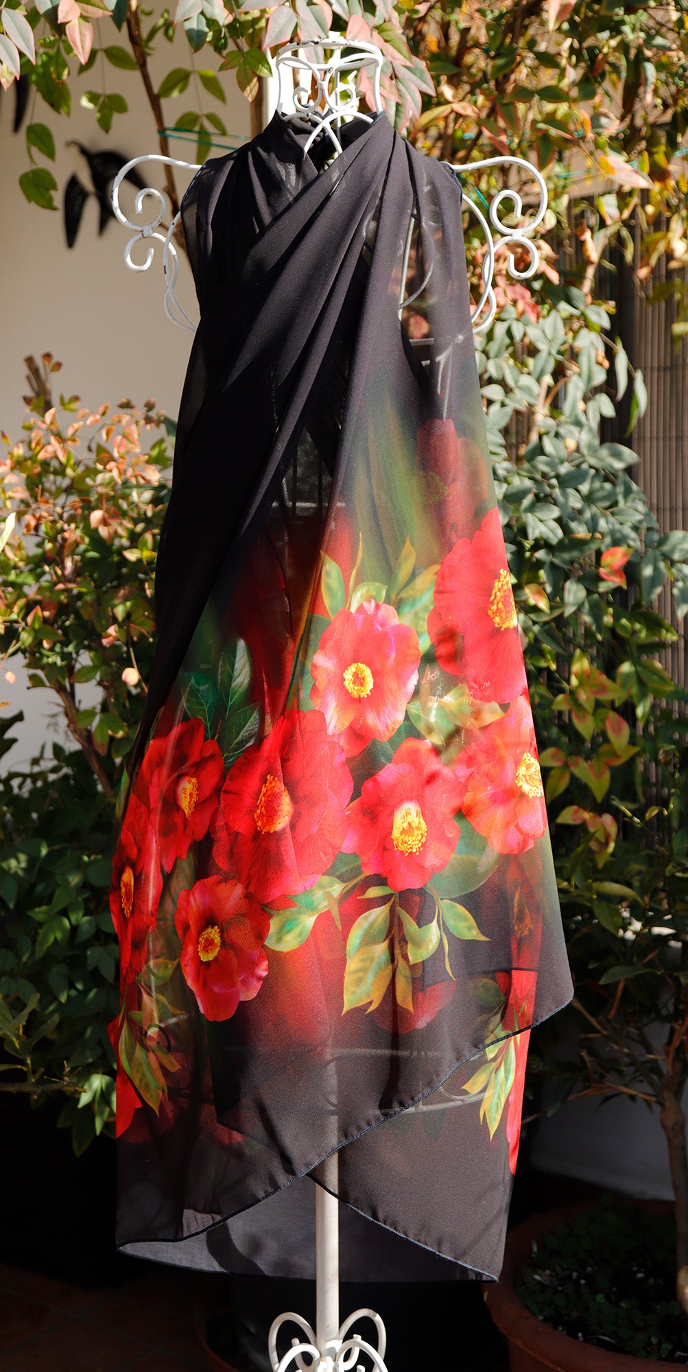 STOLA/PAREO GEORGETTE CAMELIE fondo nero